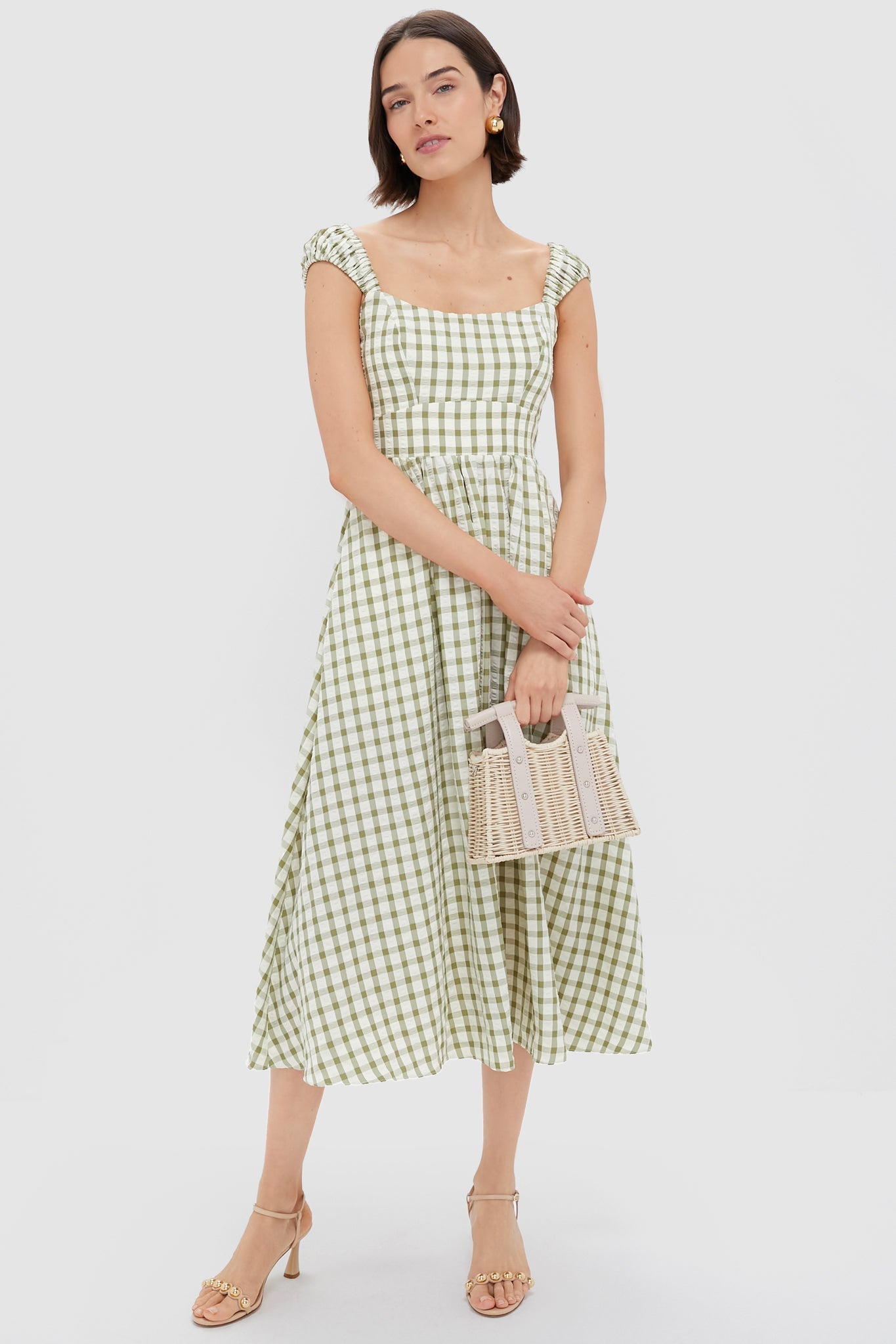 Head to a pic-nic at the park in the Sage Gingham Amy Dress. Featuring a fit-and-flare silhouette, empire waist, and shirred cap sleeves, this piece is picturesque! Style with heels and a clutch for elevated affairs or sandals and a tote for casual days spent in the sun - the options are endless with this dress!