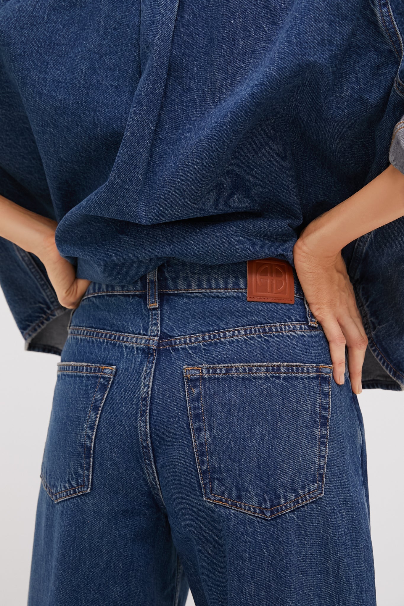 The Sea Blue Manon Jean features a baggy silhouette constructed from mid-weight rigid regenerative cotton denim without stretch in a deep sea blue wash for a clean, vintage look. Style with a white tee, matching Sea Blue Paxton Shirt, flats, and go-to bag for easy, everyday wear!