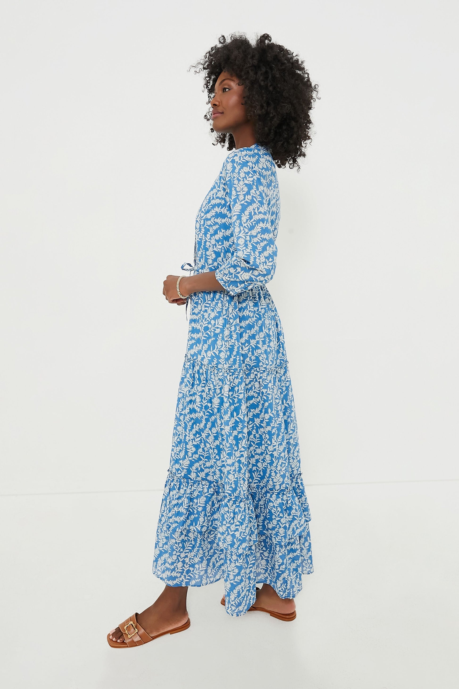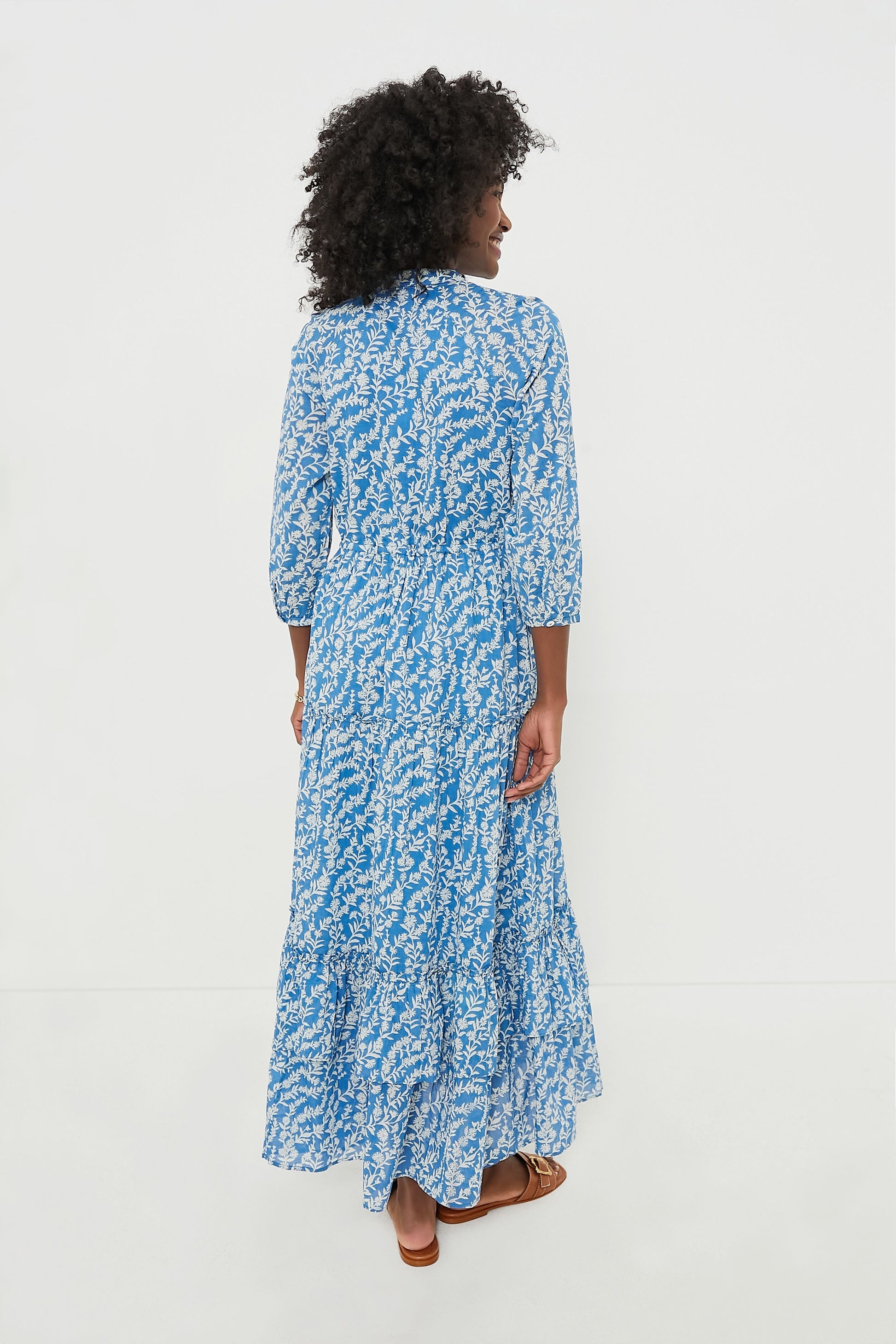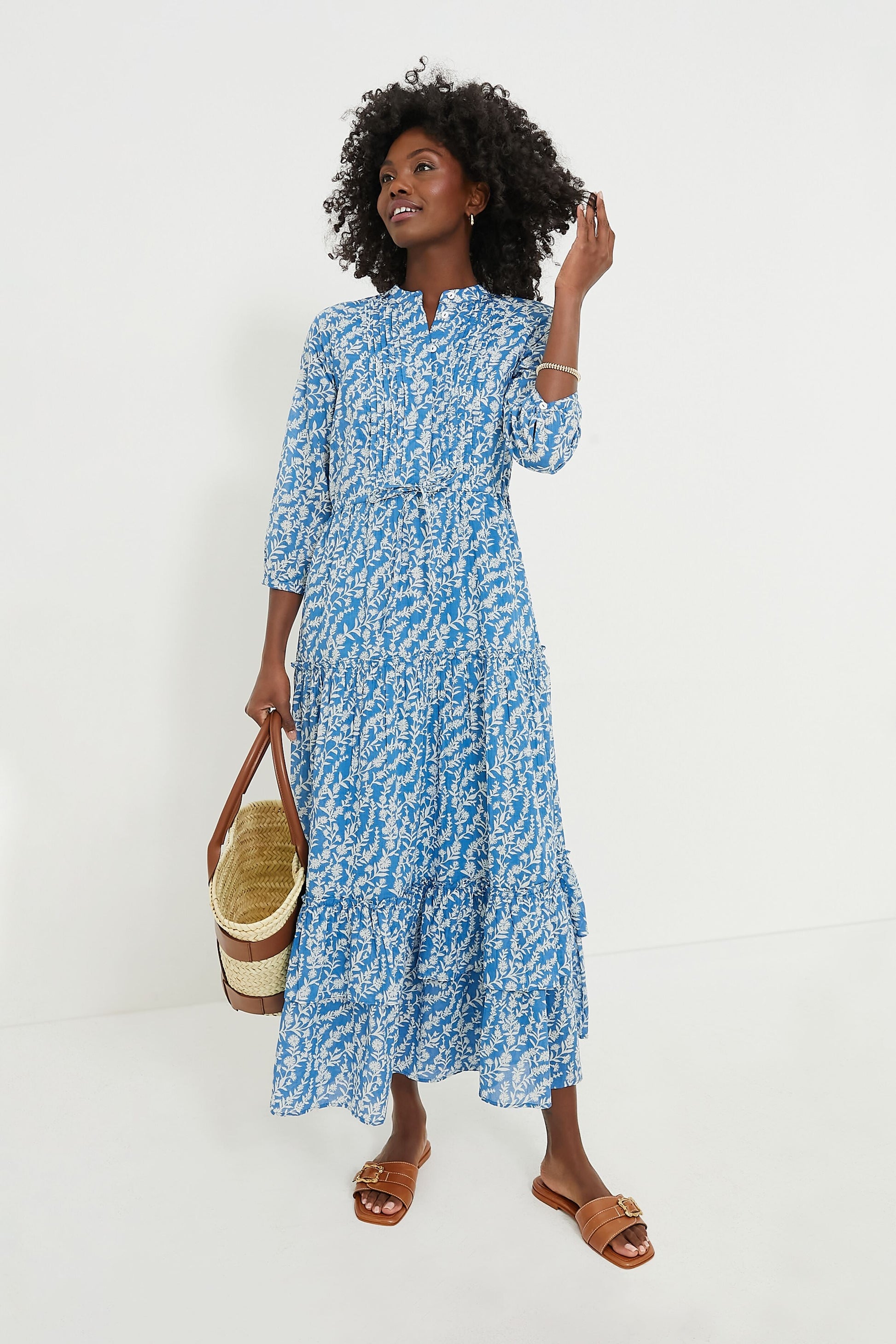 The popular Bazaar dress features a button front, puff sleeves, and a drawstring waist. This midi is inspired by simple spring blooms freshly cut from the garden, painted in an abstract, uplifting, and vibrant design. Chic and comfortable, it is perfect for vacation breakfast by the sea or a day spent exploring.