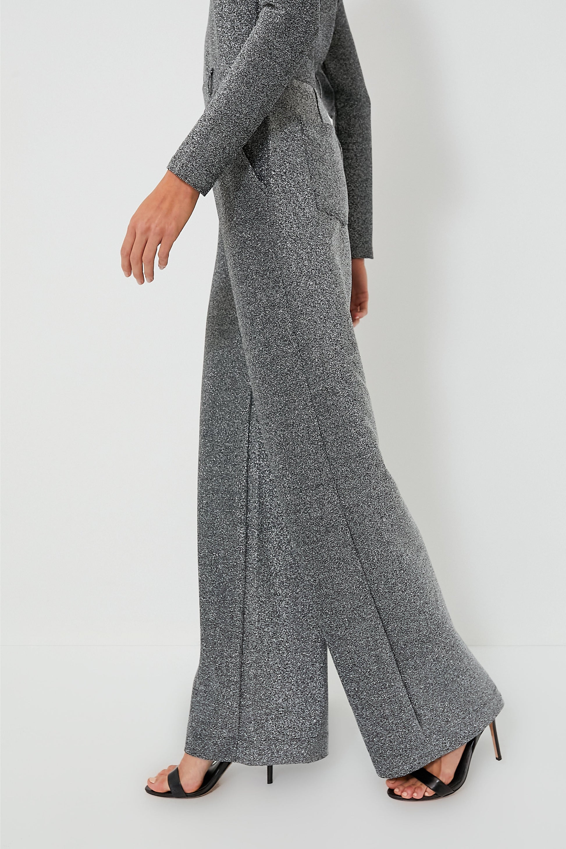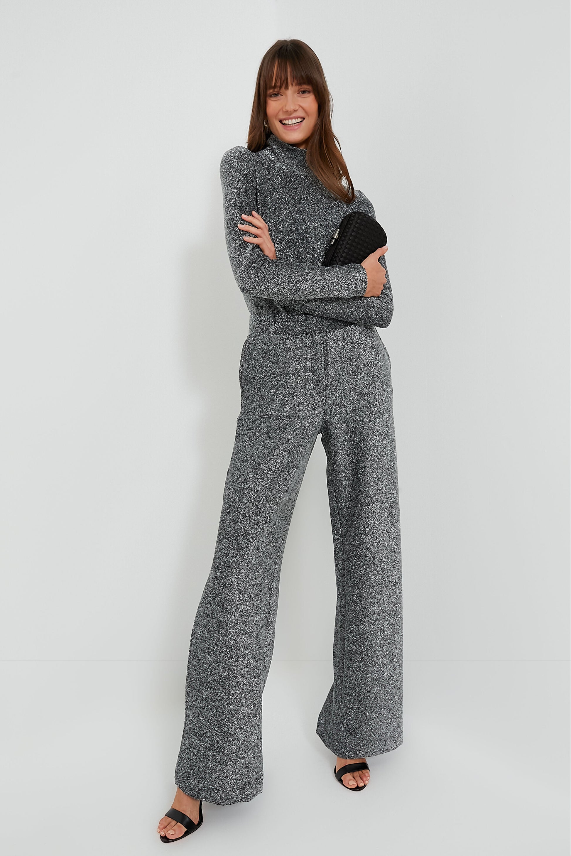 Shine bright in the Shimmer Gray Jya Pant by Baum Und Pferdgarten! These have a classic straight-leg trouser silhouette that is elevated with stretchy, glittery fabric. Featuring an elasticized waistband, pockets at the sides and back, and belt loops at the waist, these are the perfect bottoms to wear to your next event or to dress up your office wardrobe.