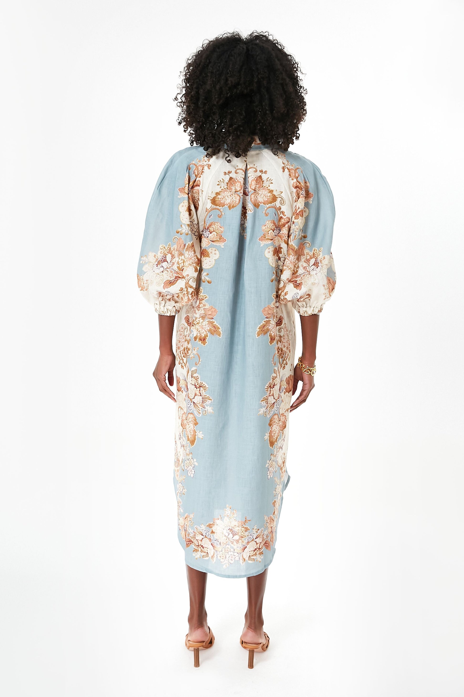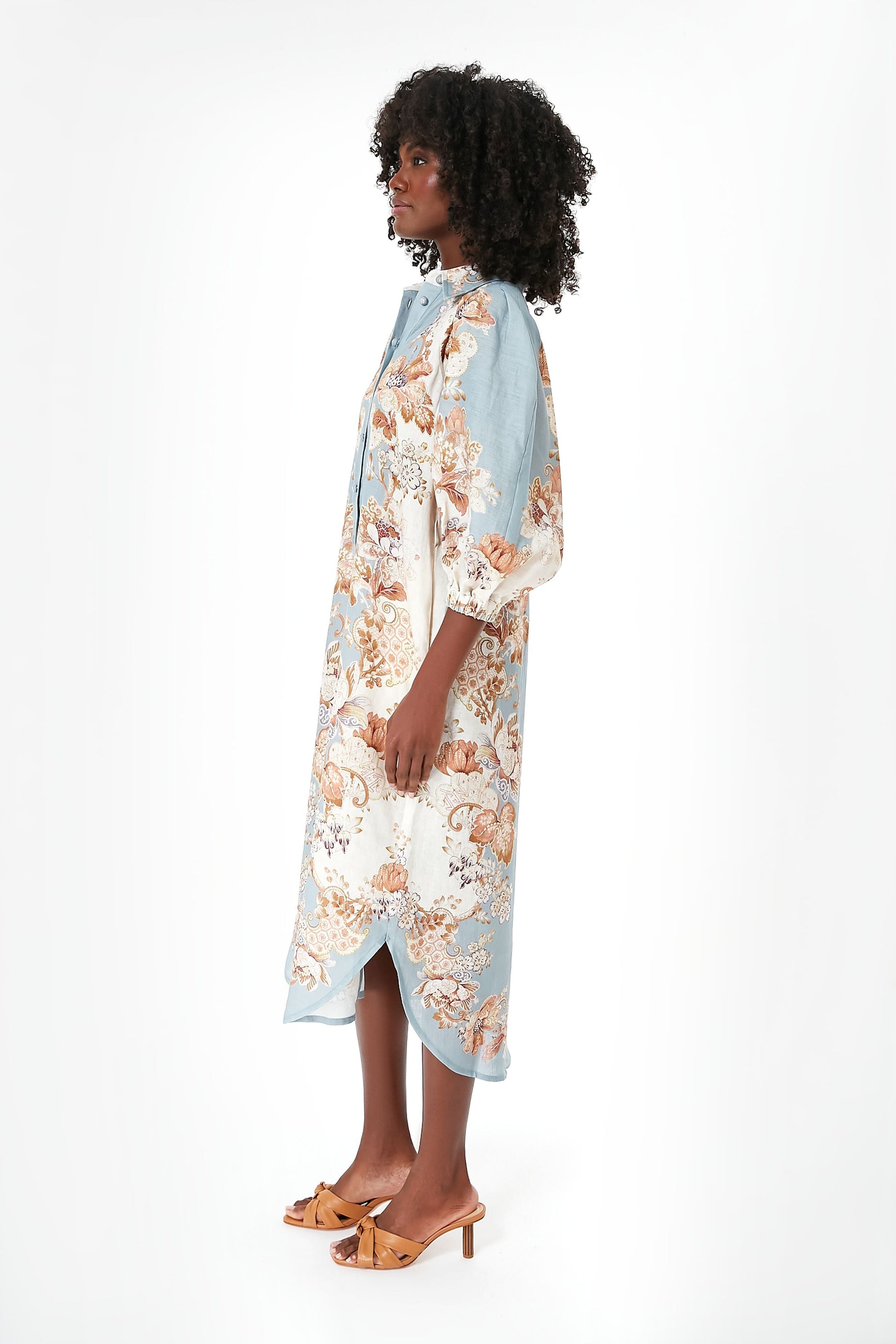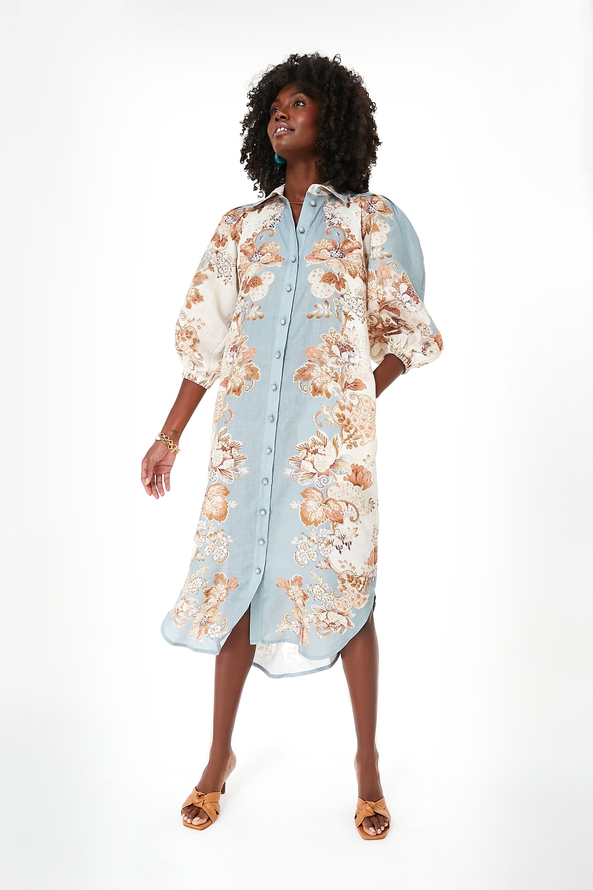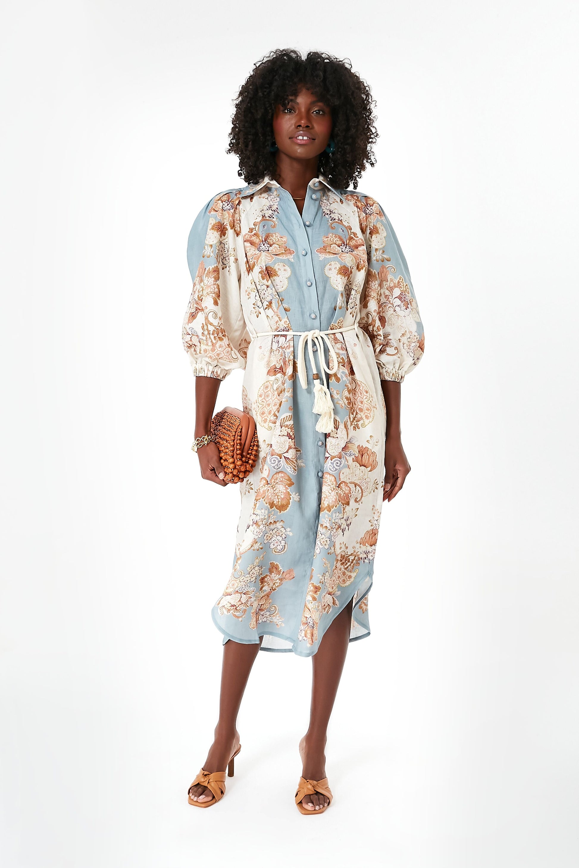 Cut from an airy linen material, the Sky Blythe Shirt Dress is a go-to silhouette for looking effortlessly chic while relaxing on vacation. With polished details such as a point collar and a covered button placket, as well as a hint of bohemian essence from the rope belt with tassel ties, this midi exudes glamor without feeling high-maintenance. Pair with a wide brim hat to sip your morning coffee at an outdoor cafe, or add a raffia clutch and espadrilles for a breezy evening dinner.