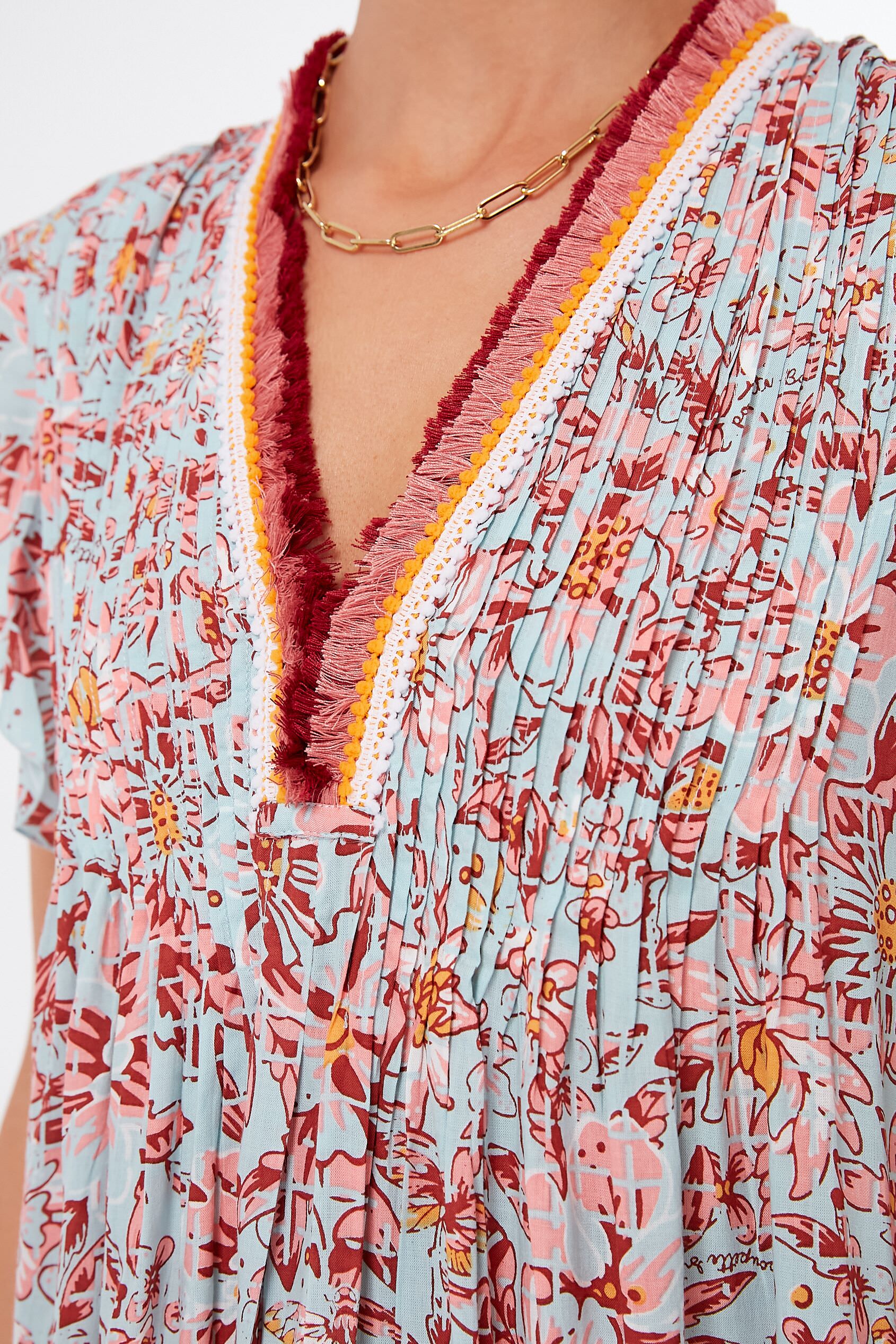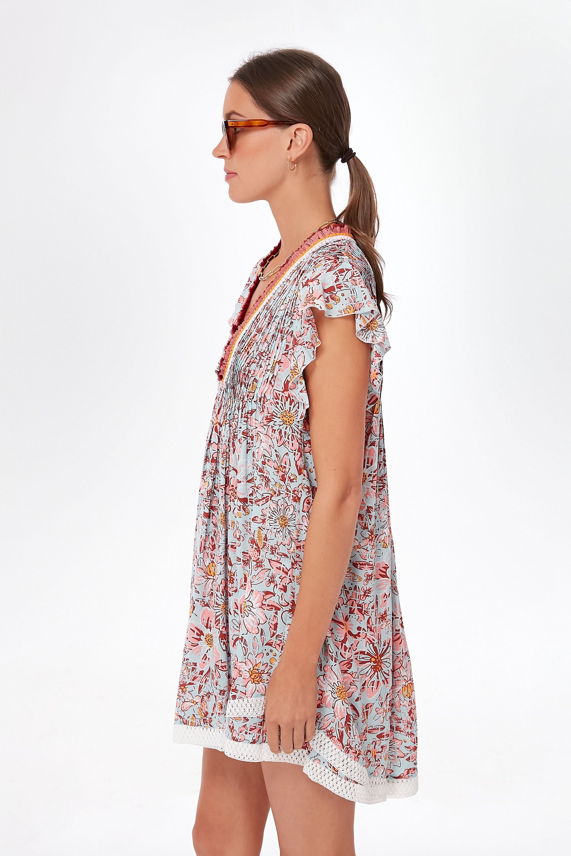 Have you ever seen a silhouette more suited for sunshine than the Sky Camelia Sasha Dress? We sure haven't! Beautiful bohemian details such as a contrast fringed neckline, a delicate pintucked bodice, and flutter sleeves create a flirty and light mini that has a ton of character and feels easy and care-free. This breezy style works just as well over a swimsuit to head down to the beach as it does with sandals and sunglasses for a coffee run, so take it along with you on your next warm weather adventure.