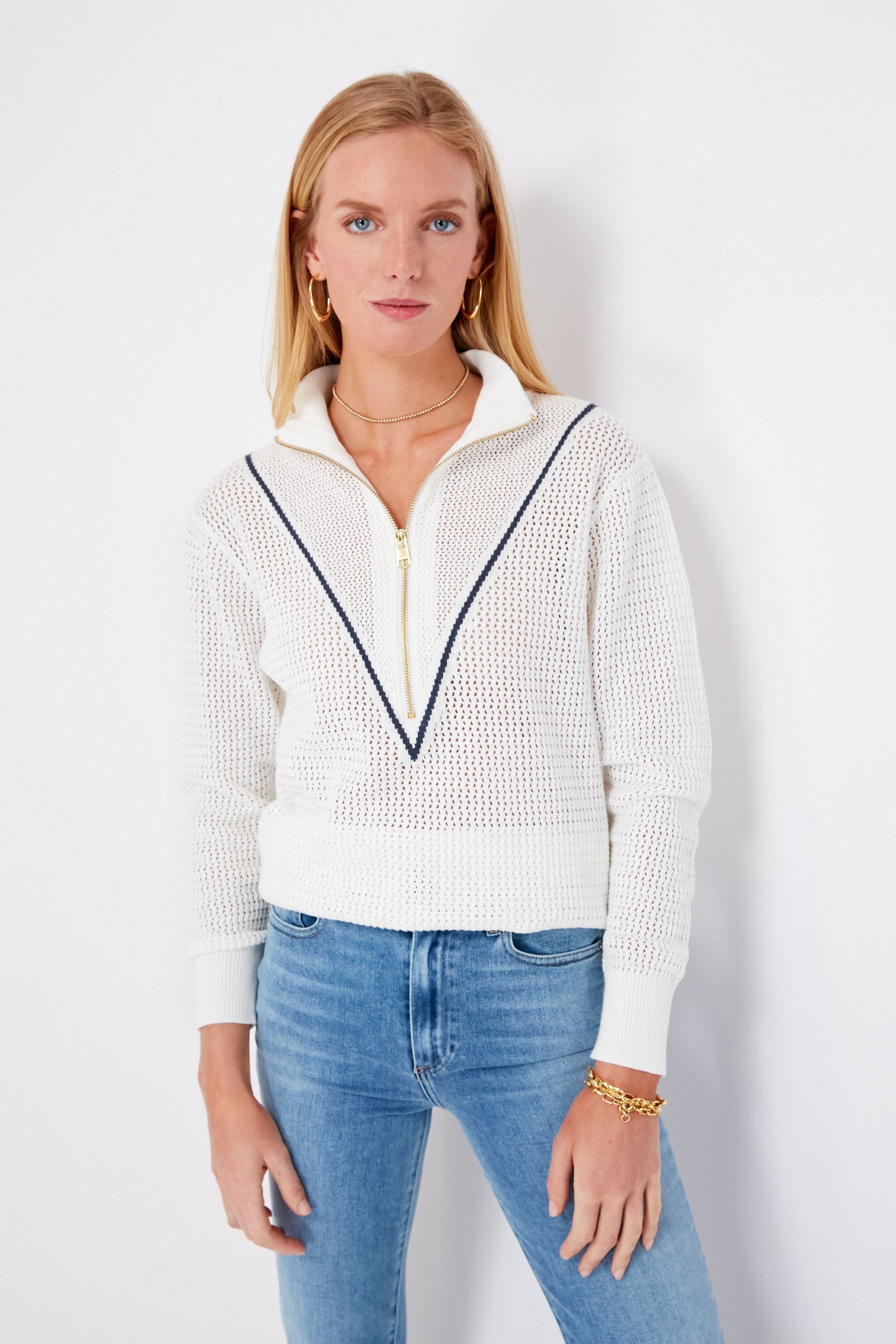 Combining fashion and function, the Snow White Calva Knit is ideal for on or off court styling. This long sleeve half-zip polo features a contrast V-panel and high neck, giving it a unique and modern look. Made using a textured open knit fabric made from soft cotton, it’s the perfect layering piece for cooler days, whether you wear it with shorts or leggings for a quick game of pickleball, or with denim for running errands around town.