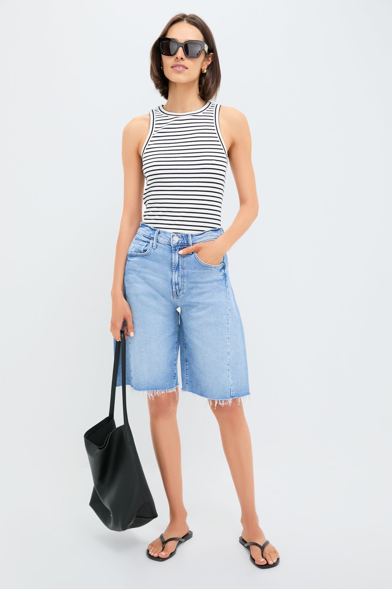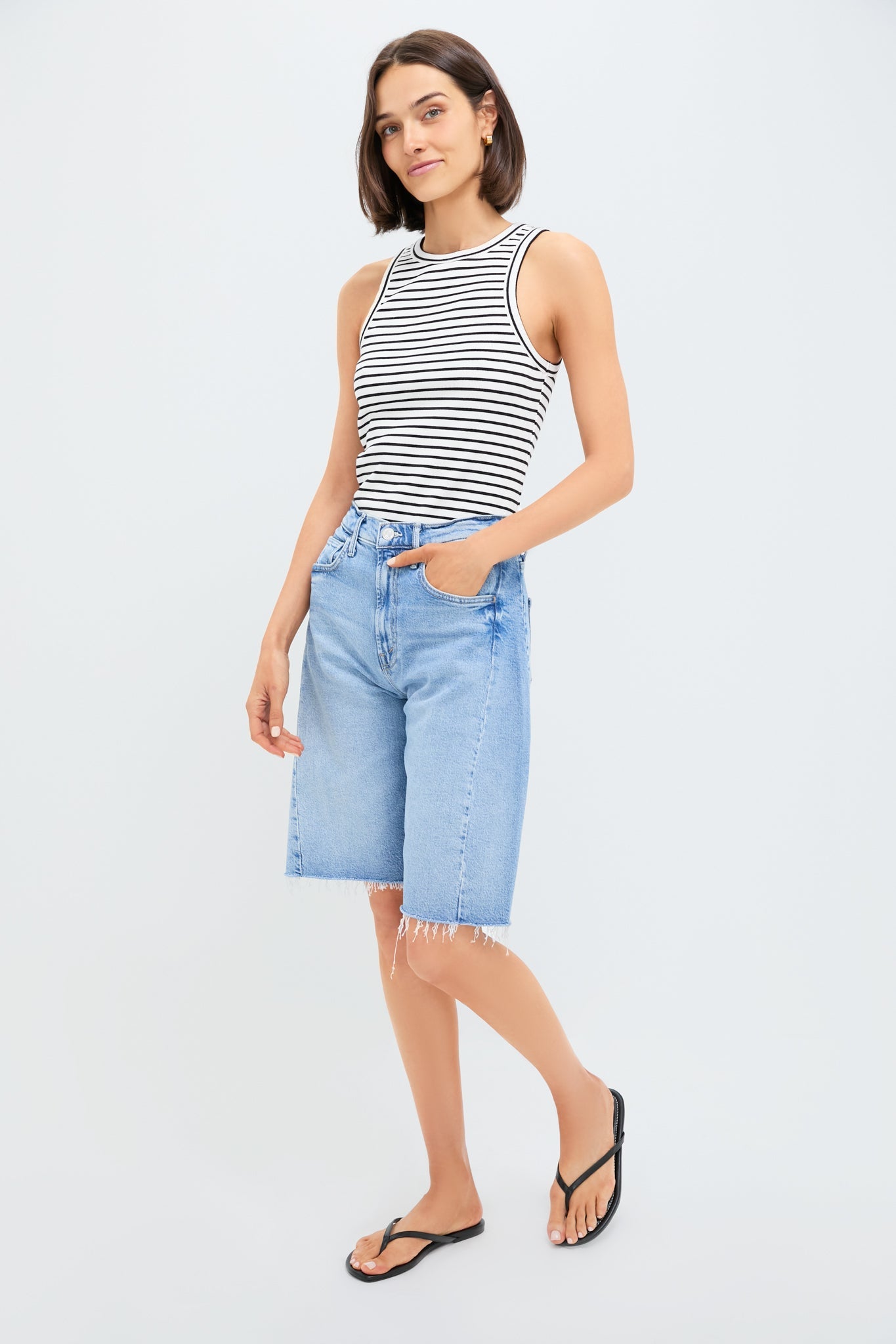 The Sow Surreal The Half-Pipe Bermuda Fray are crafted from rigid denim, that get better with every wear. With a super high-rise, wide leg, and frayed hem, these shorts are sure to become a staple in your warm weather wardrobe. We styled them with a tank, sandals, and sunnies for casual wear!