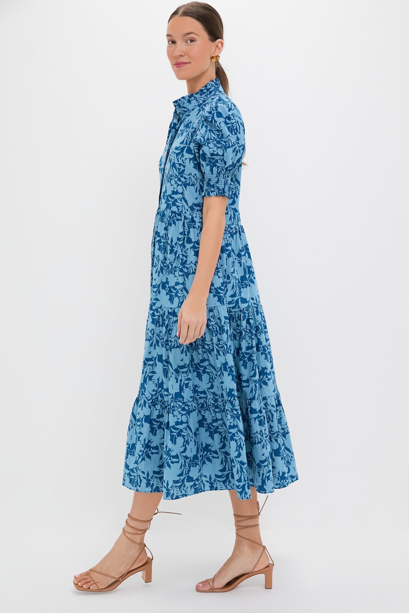 The Steel Blue Floral Bennett Maxi Dress boasts a flattering silhouette, with a defined waist and a tiered midi skirt. The unique print adds a touch of freshness, ensuring you stand out with grace and style at multitude events such as garden parties, brunches, or casual gatherings. Style it with strappy heeled sandals and mini tote for a sophisticated ensemble.