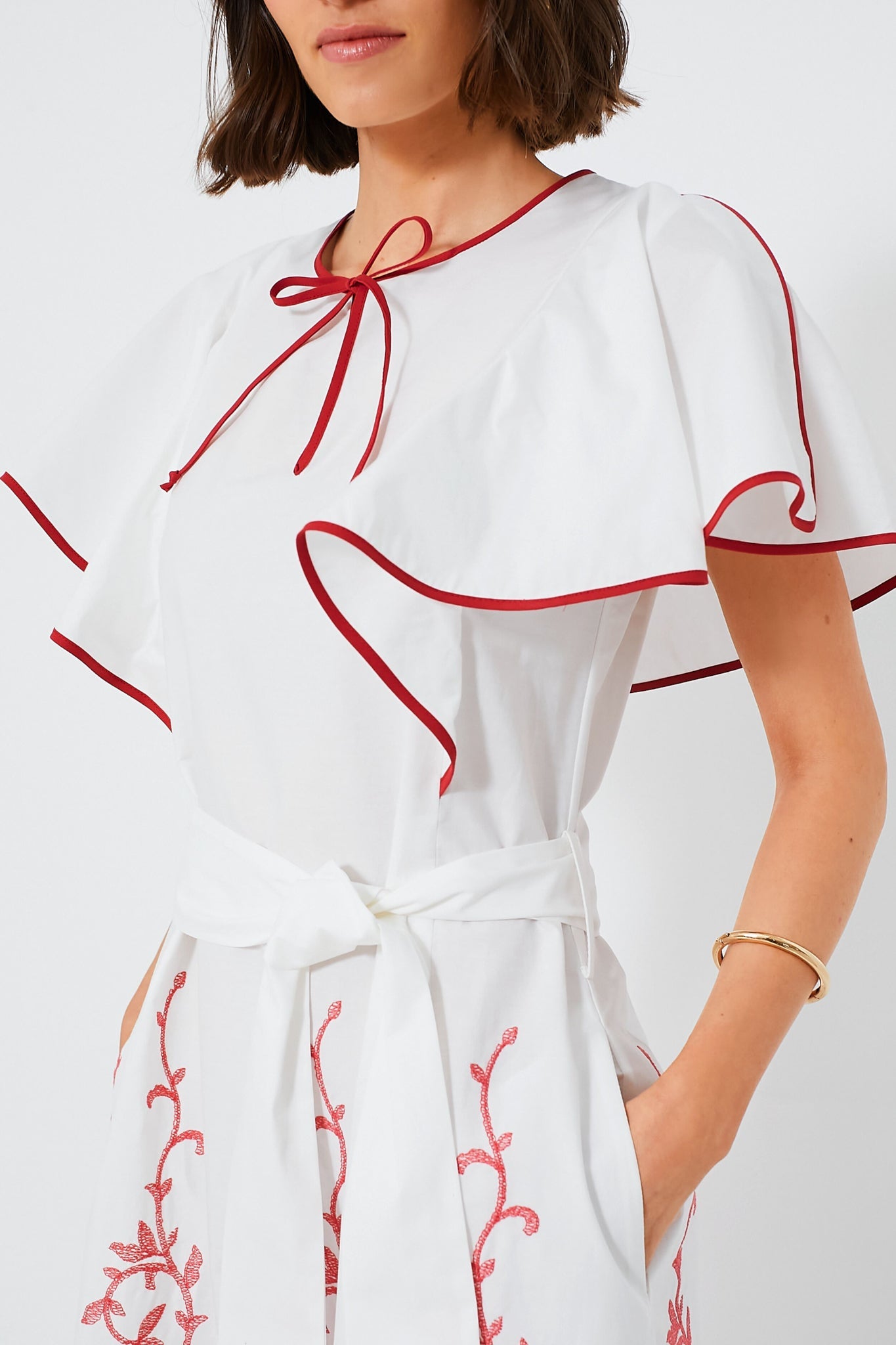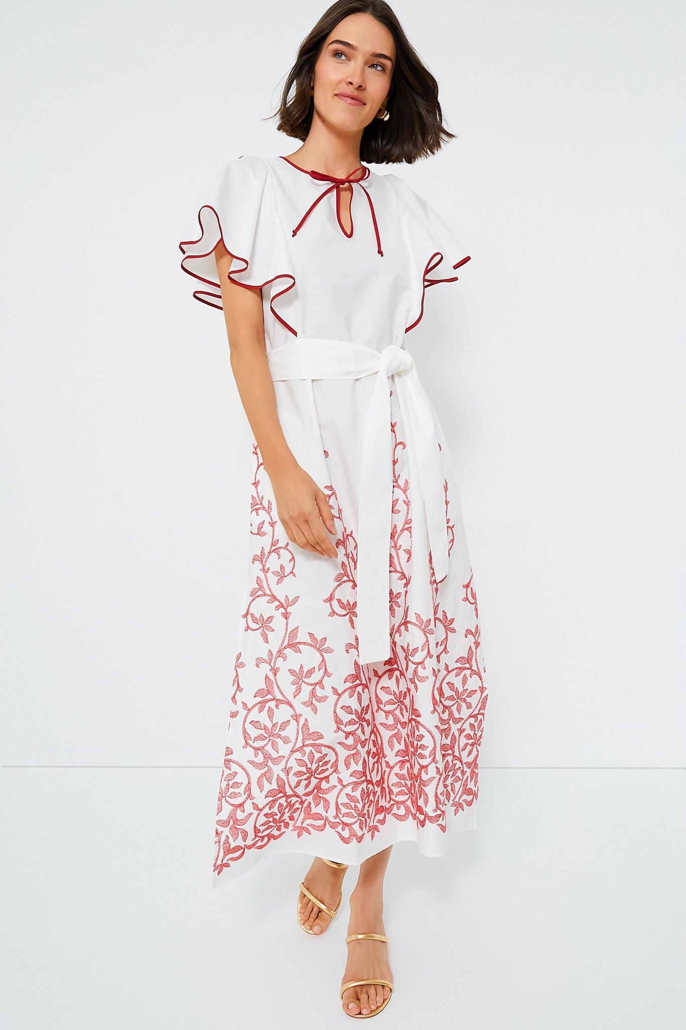 Sure to turn heads wherever you go, the Strawberry Leaves Daisy Dress is truly one of a kind. Full of feminine details like ruffled flutter sleeves that add some dimension, red printed flowers across the skirt, and a self-tie belt at waist, this maxi definitely brings out the flirty and romantic. Add strappy sandals and a red clutch for a chic look at all your RSVPs this season.