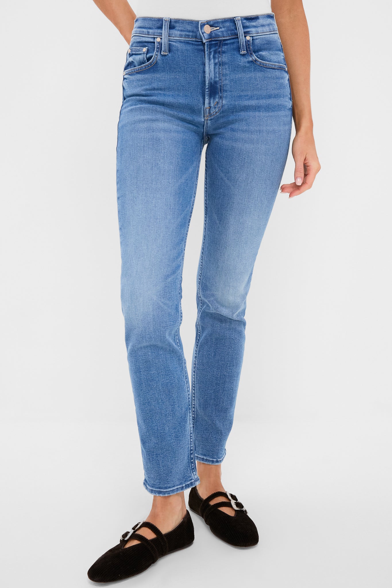 This mid-rise straight leg has a 29-inch inseam and a clean hem. Cut from super stretchy denim, Swing And A Miss is a mid-blue with whiskering and fading at the knee. Pair this ultra versatile pair of jeans with tees, tanks, sweaters, and even jackets, a true all season wardrobe staple!