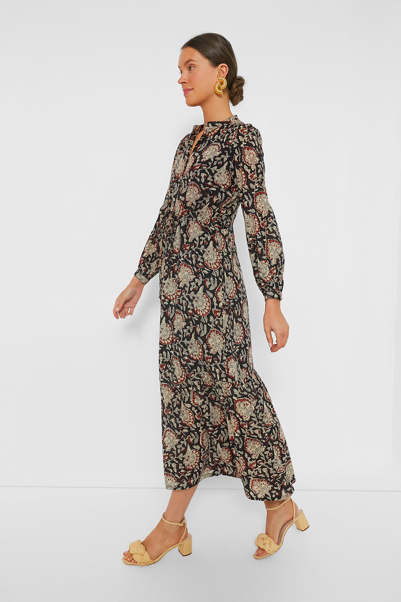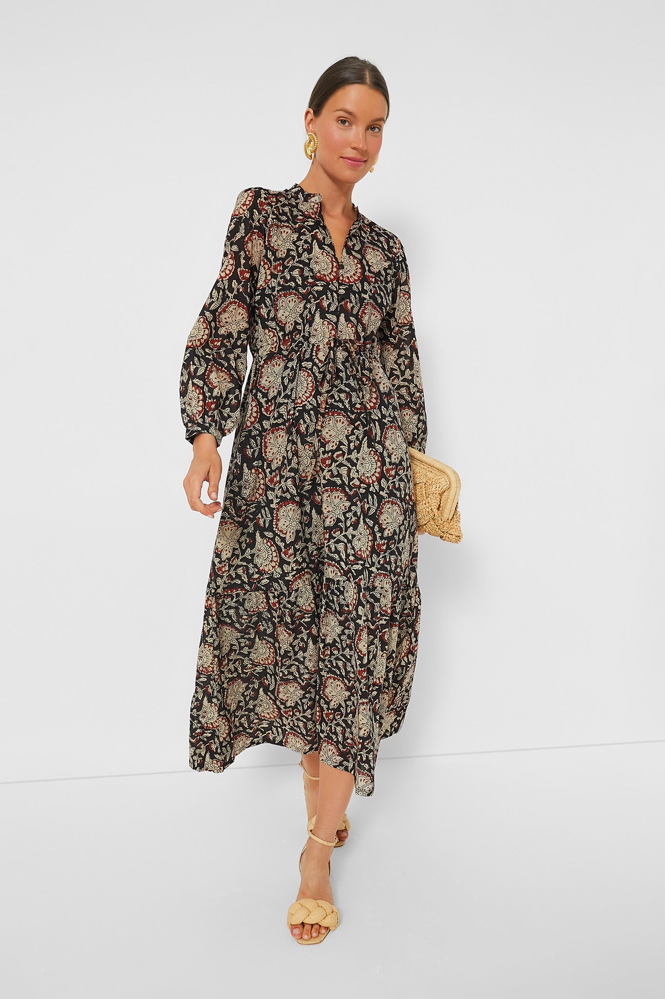 With a beautiful hand-block printed fabric, this Thalia Organic Frances Dress features a partial front button closure, drawstring waist, and a tiered ruffle hem for a feminine and sophisticated silhouette. Add leather boots and gold accessories for a classic boho-chic ensemble, or pair with flats and a tote for a casual-cool daytime look.