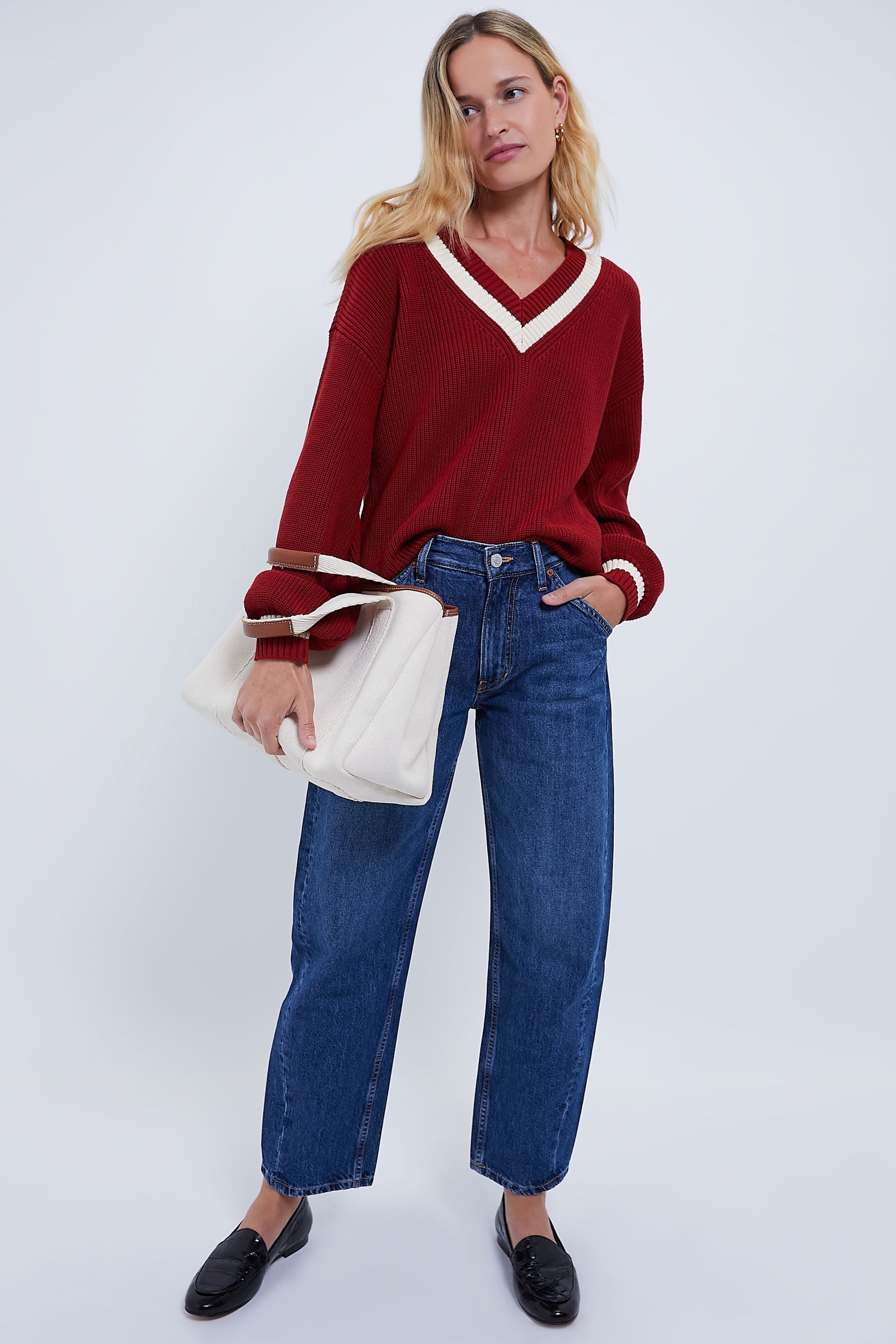 This Washed Red Ashe Sweater embodies the essence of chic timelessness. The classic silhouette features feminine balloon sleeves, a contrast V-neckline, and a high quality tight-gauge knit that is buttery soft to the touch. The perfect length for easy tucking, we are pairing this with pants for chilly summer evenings or with a tennis skirt while warming up on the courts.