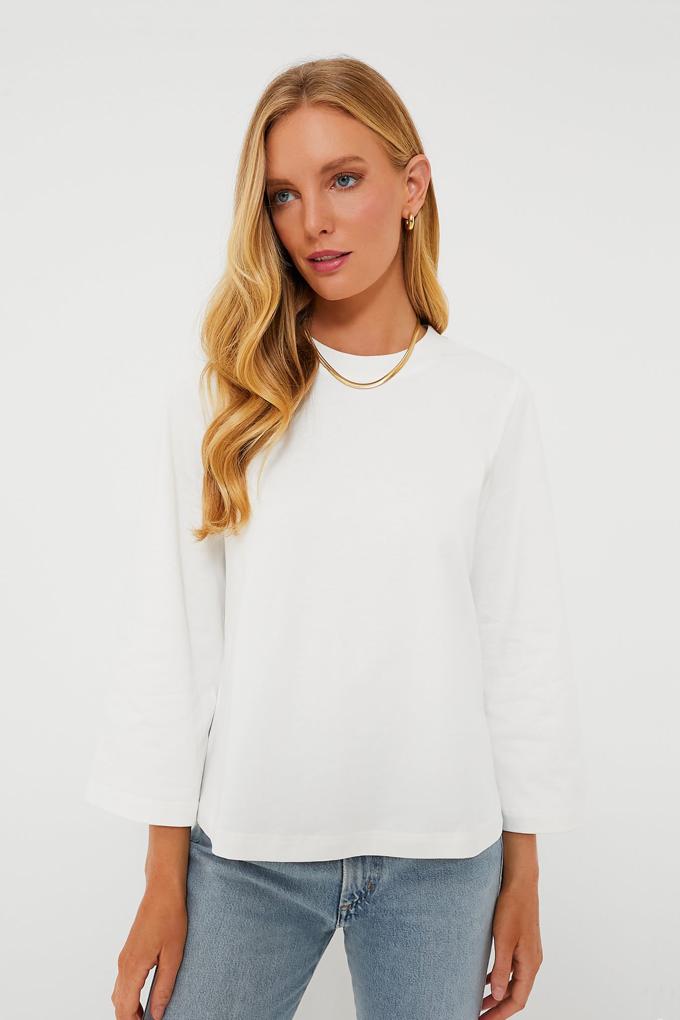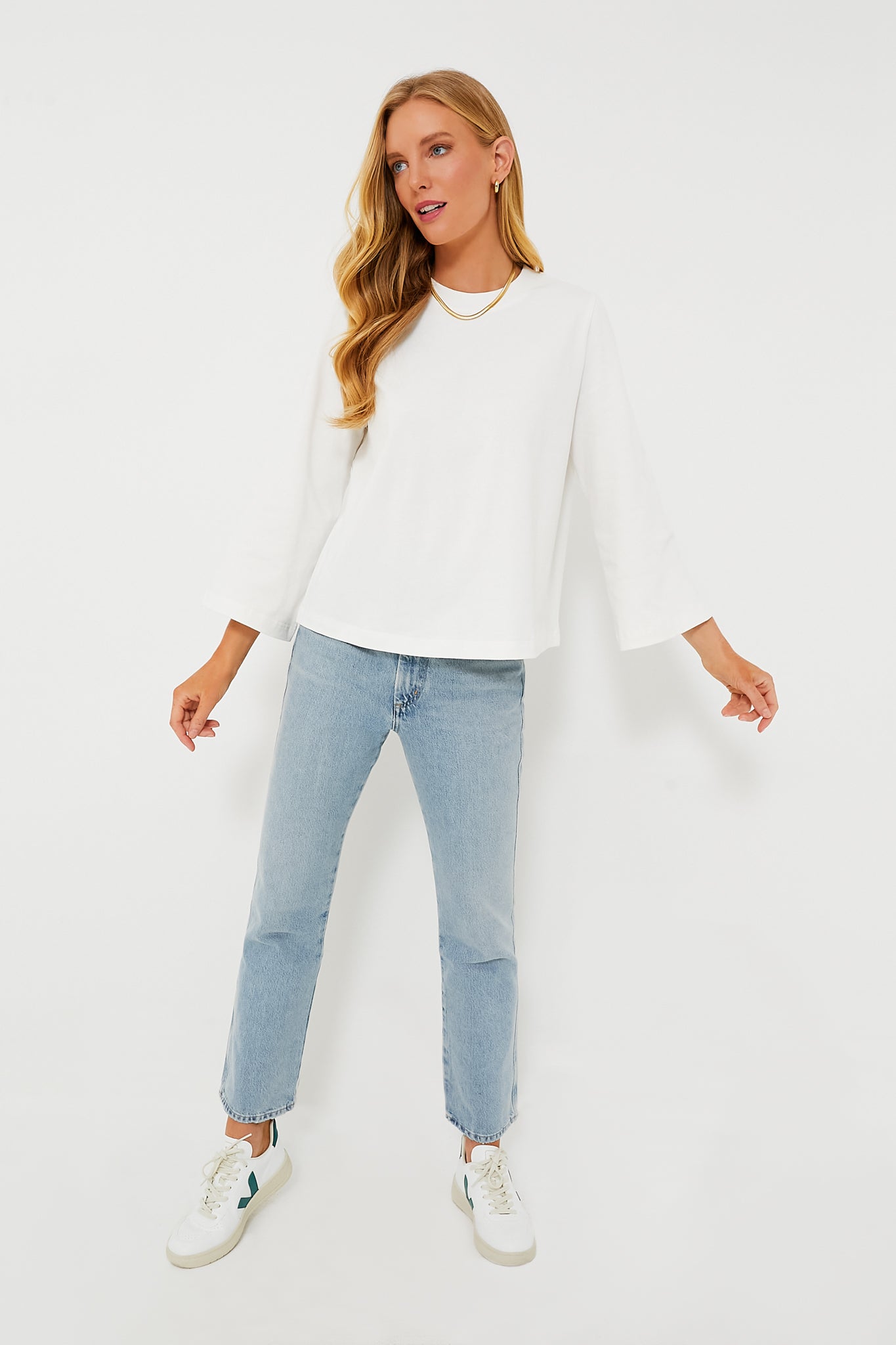 Not your average white tee — the Adler takes all the components you love about the classic go-to style and freshens them up with a few subtle additions. Cut to a relaxed fit and made from soft cotton for a perfect drape, this shirt's long flared sleeves bring an extra special touch that makes it feel elevated. Throw this chic silhouette on with your favorite denim and a tote for everyday style that will have you feeling fine.