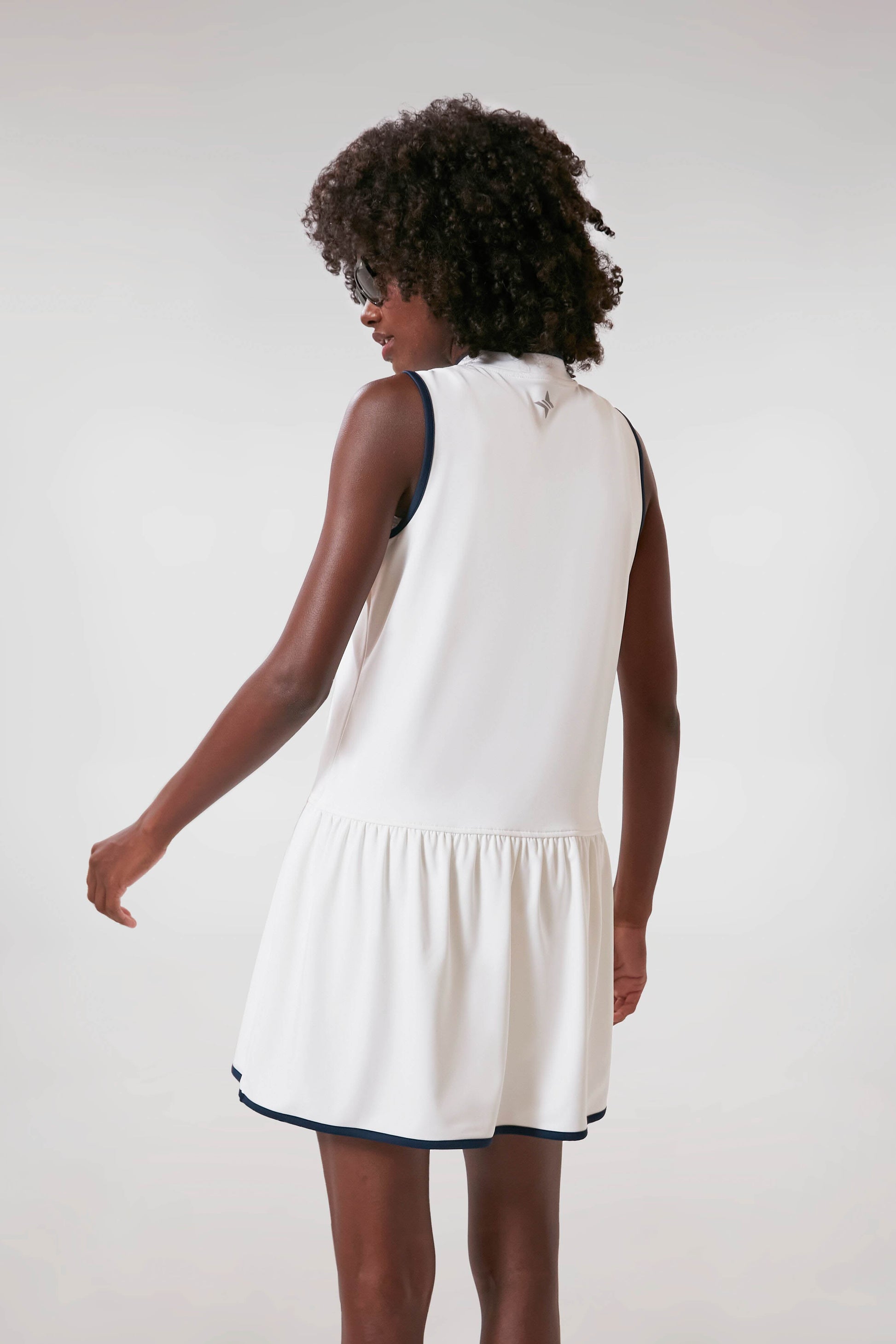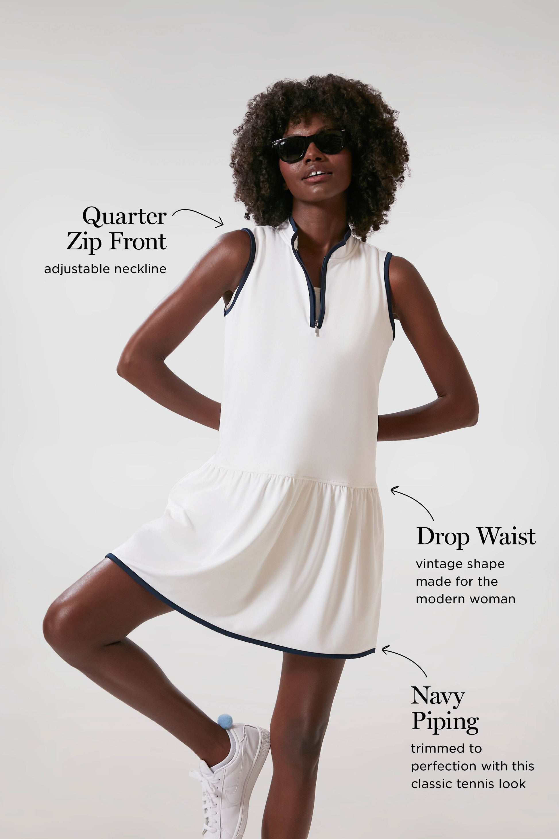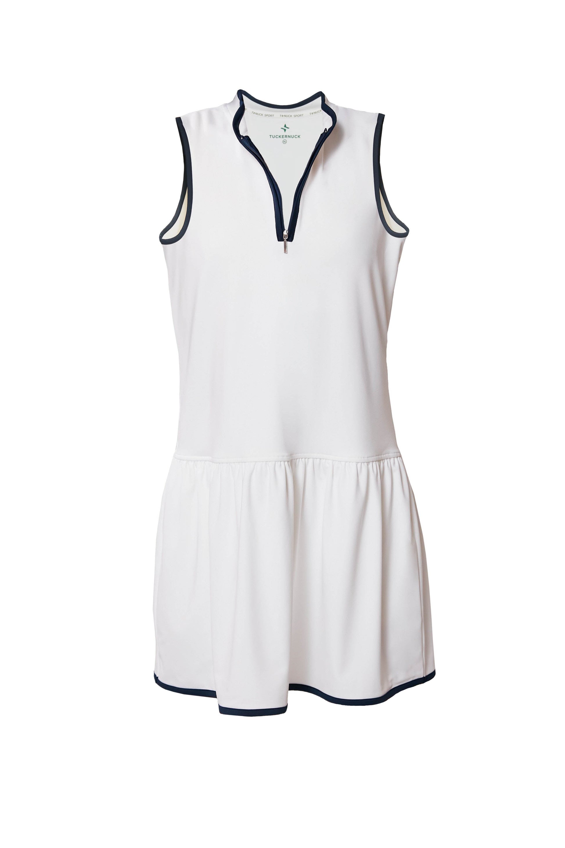 White and Navy Quarter-Zip Tennis Dress