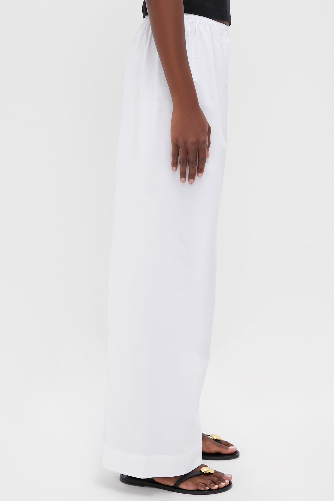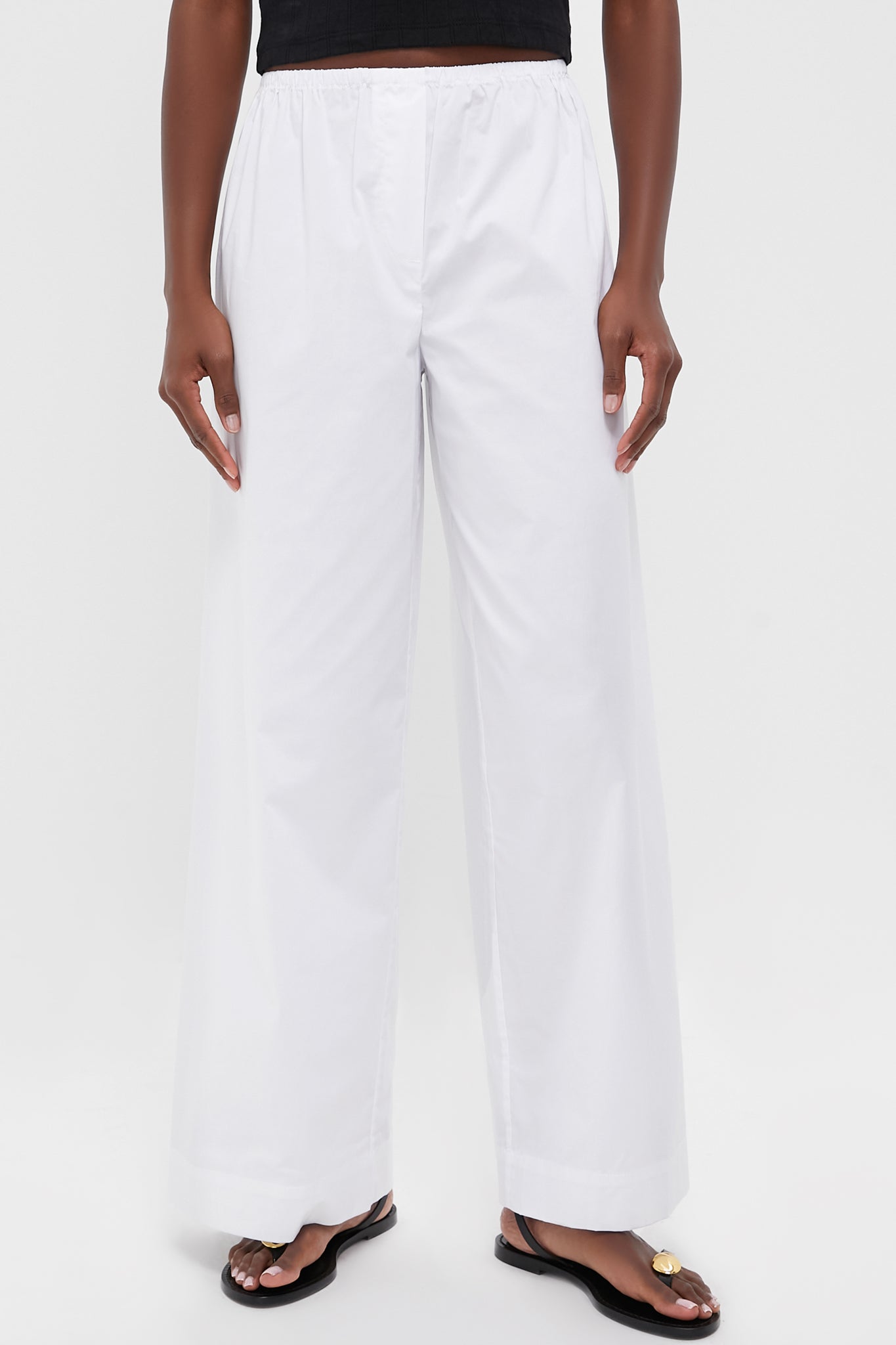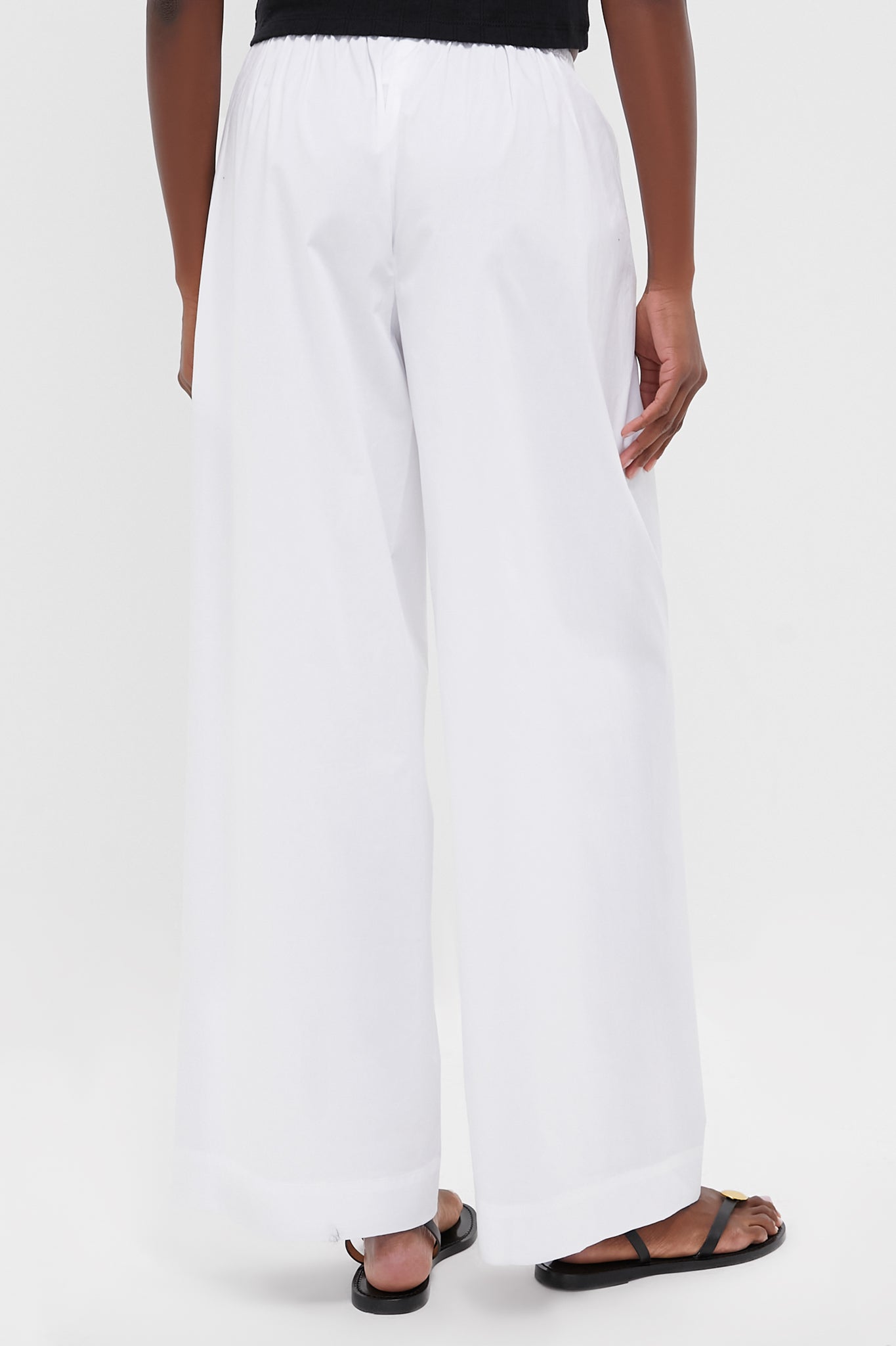 The White Bonfire Pant combines effortless comfort with chic appeal. Featuring a wide-leg silhouette and an elastic waist this crisp cotton poplin pant is perfect for a relaxed sophisticated look that transitions easily from day to night.