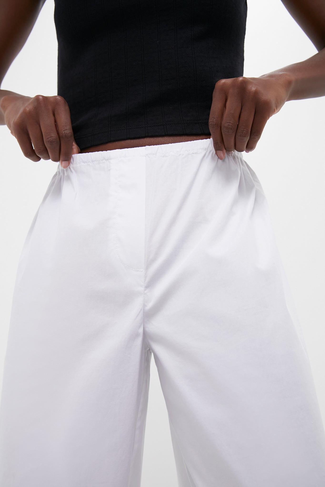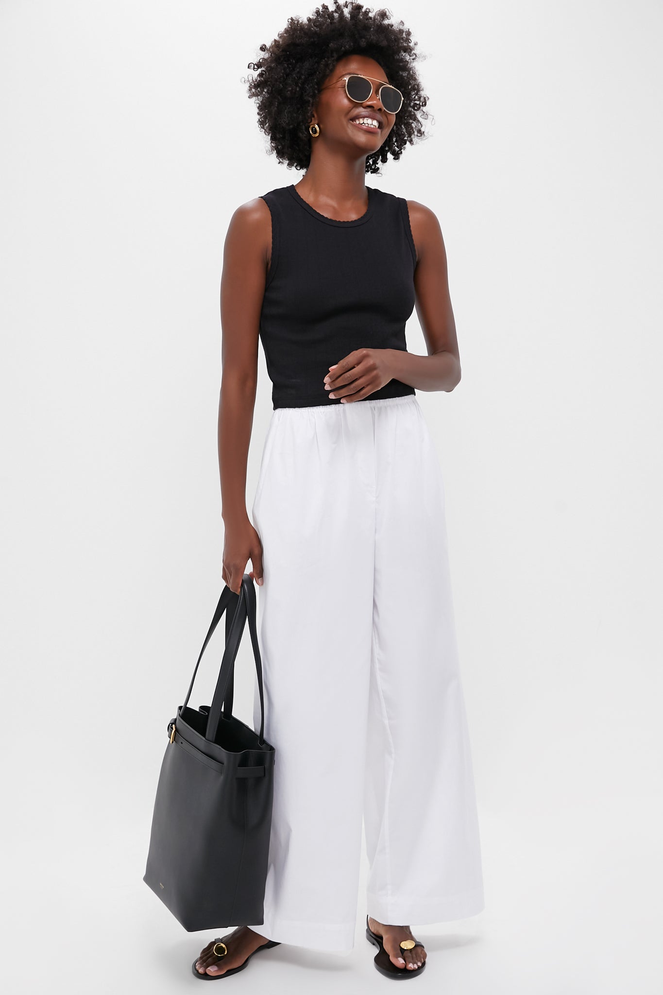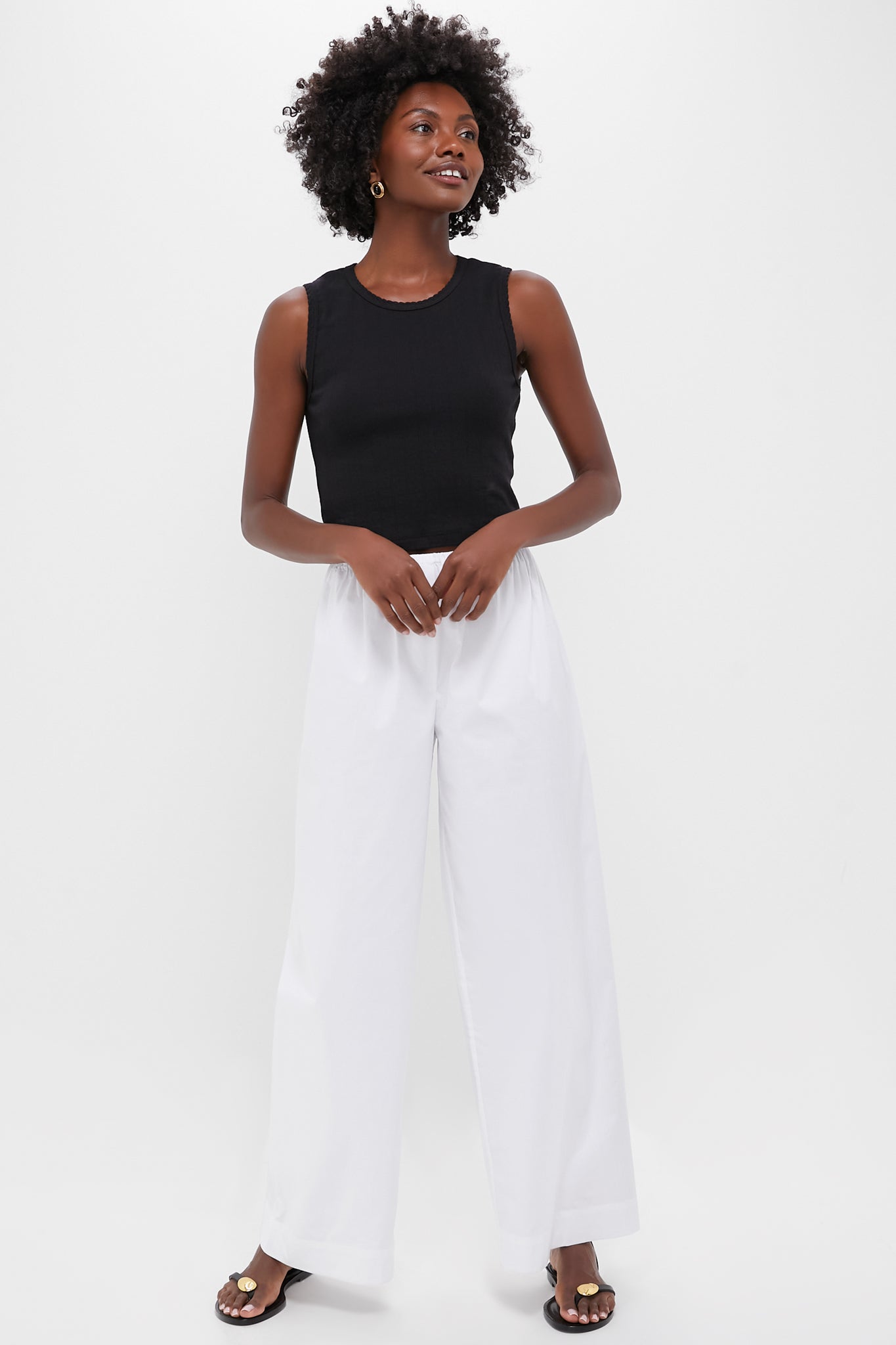 The White Bonfire Pant combines effortless comfort with chic appeal. Featuring a wide-leg silhouette and an elastic waist this crisp cotton poplin pant is perfect for a relaxed sophisticated look that transitions easily from day to night.