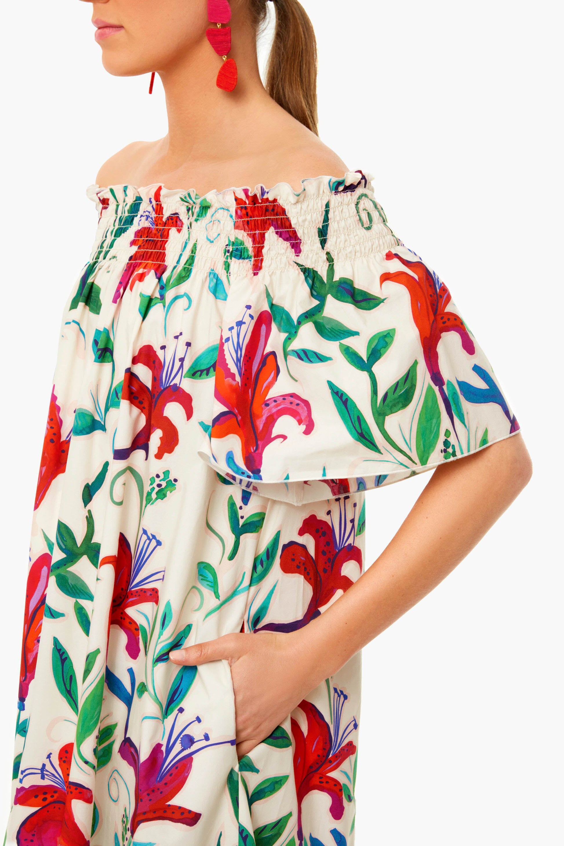 Named after an ancient village you should add to your itinerary for Tuscany, the Capalbio Dress is destined for hot Mediterranean days and sultry summer nights. The delight is in its versatility- with an elasticated smock neckline and voluminous bell sleeves, you can wear it on or off your shoulders. Made from fresh, lightweight cotton poplin, this twirl-worthy silhouette has an extra ruffle tier that pumps up the volume while you dance the night away. Add statement jewelry and you are sure to be the best-dressed guest!