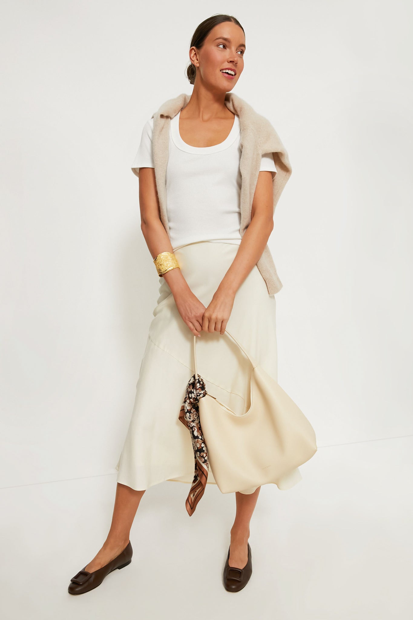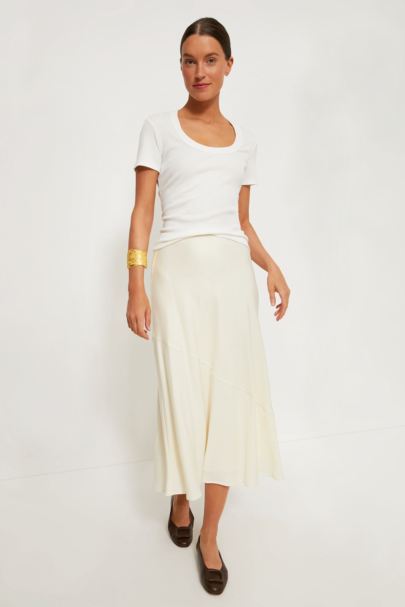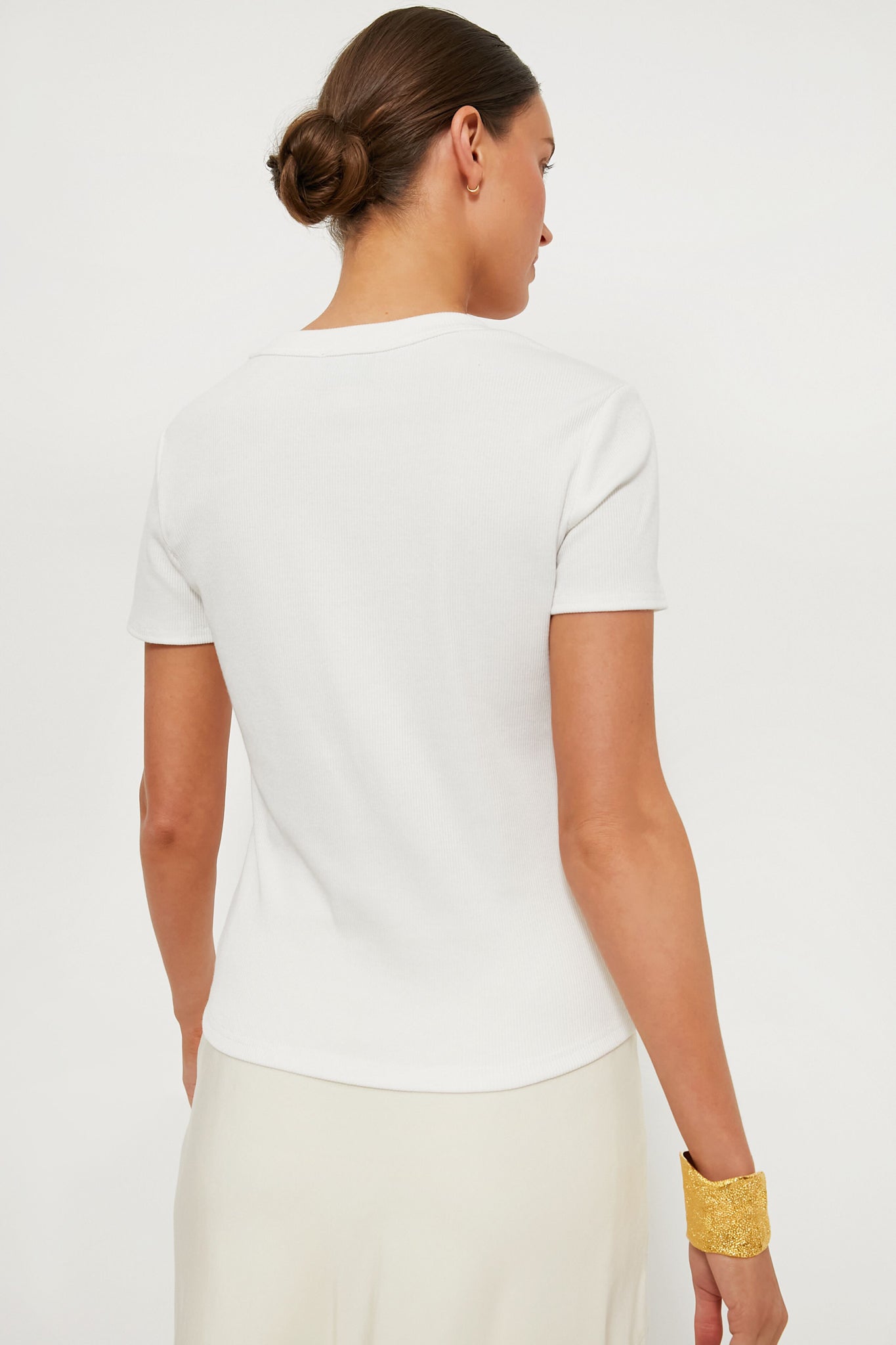 This slim-fitting scoop neck tee is a staple that you will find yourself wearing on repeat. The perfect layering piece or blank canvas for accessories, we are styling this with skirts, denim, blazers, you name it!