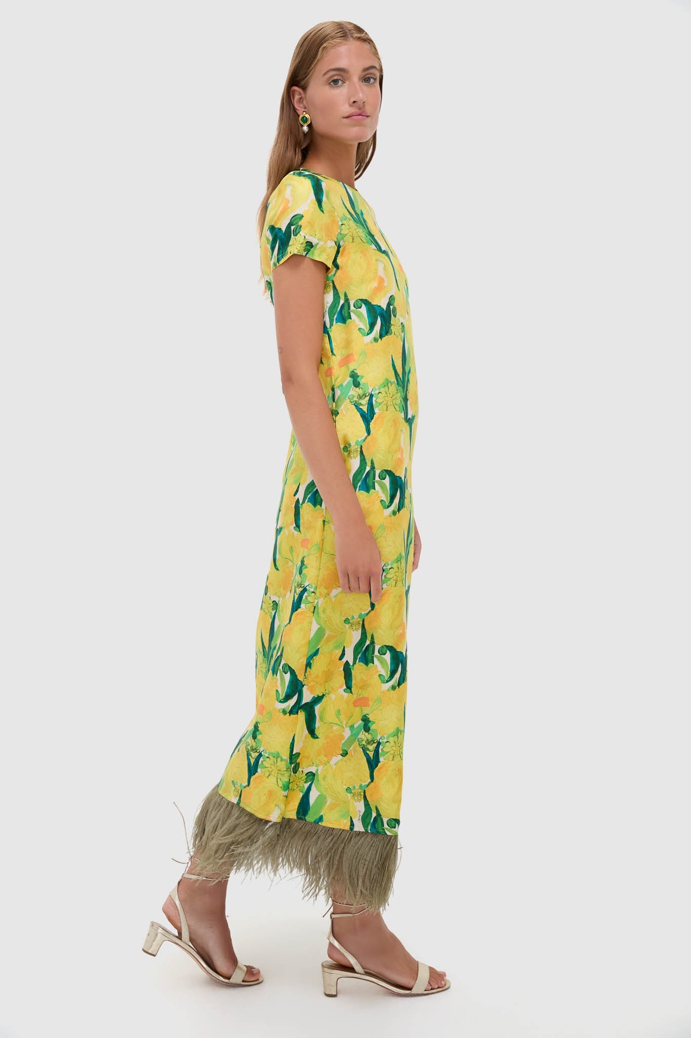 This easy silhouette is cut slim in the shoulders and generous in the hips for a flattering (and comfortable) fit. Done in a fluid silk twill that doesn’t cling a bit, it’s finished with a fabulous contrast feather trim that honestly finds a fan club wherever you take it. With its understated T-shirt silhouette, anything goes.